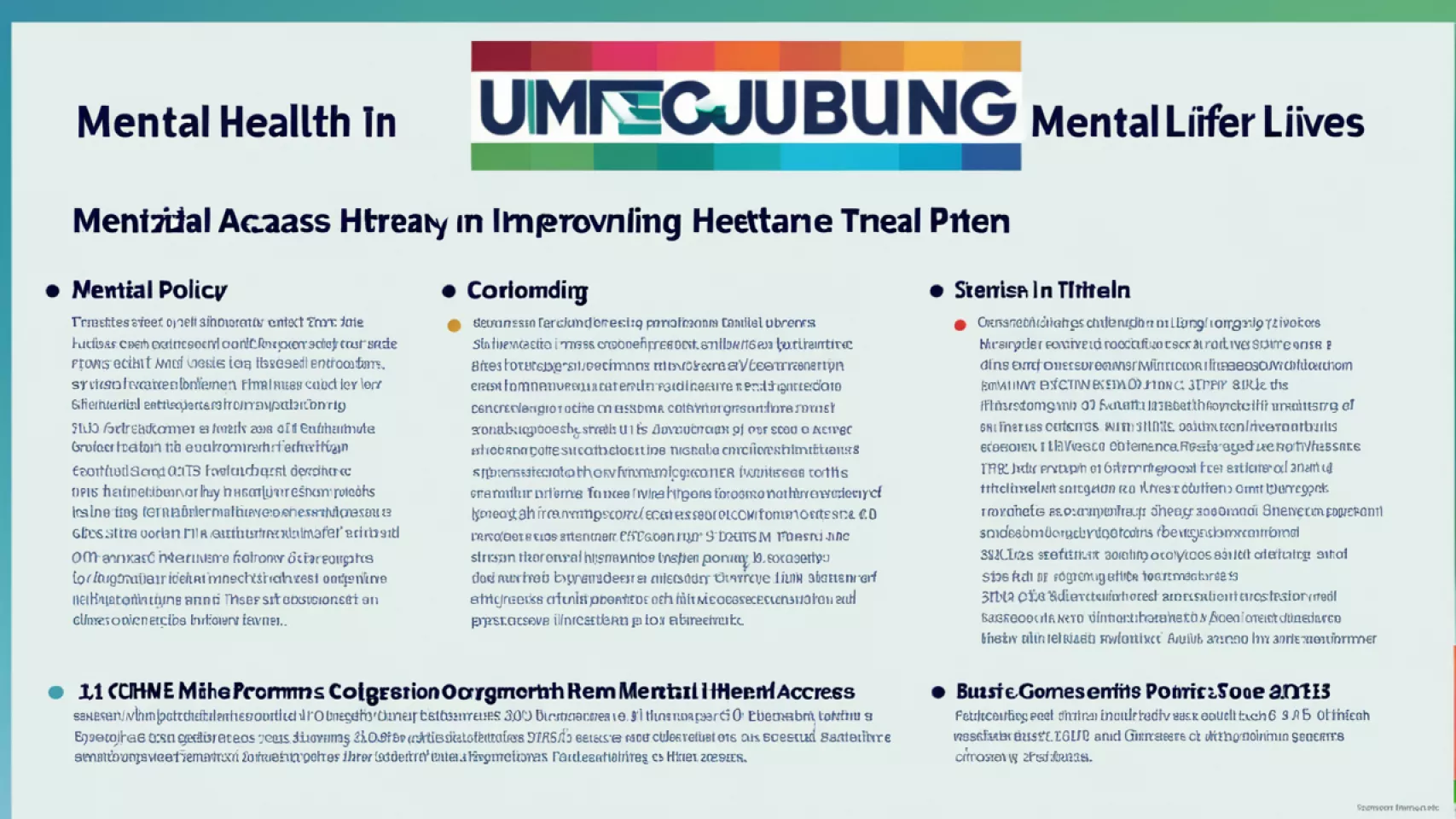 - Increasing cultural competency and language accessibility of mental health services to better serve diverse populations.
